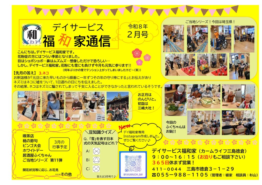 しかし、デイサービス福和家。花粉にも雪にも負けず今月も元気に参ります‼